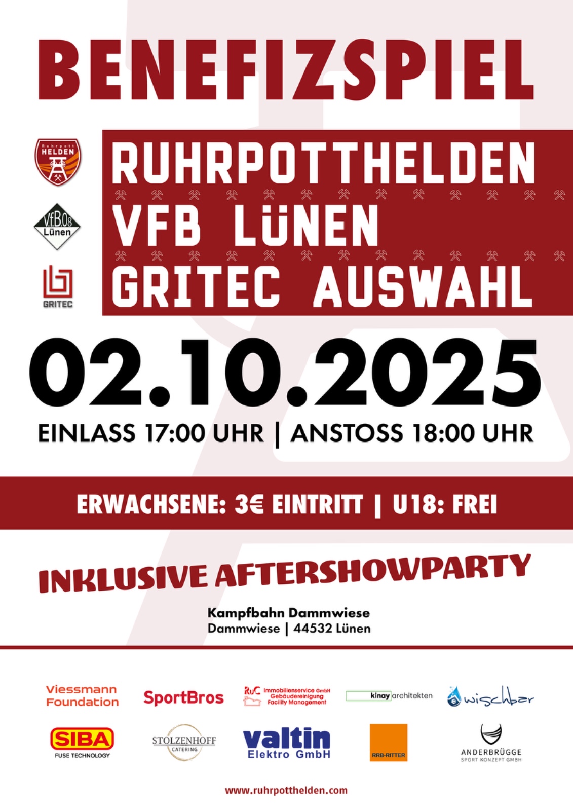Am 2. Oktober kommt es zum Dreier-Showdown: Die Ruhrpotthelden, die Gritec-Auswahl und eine Auswahl des VfB Lünen treten in spannenden Spielen gegeneinander an – Action und Tore garantiert!
